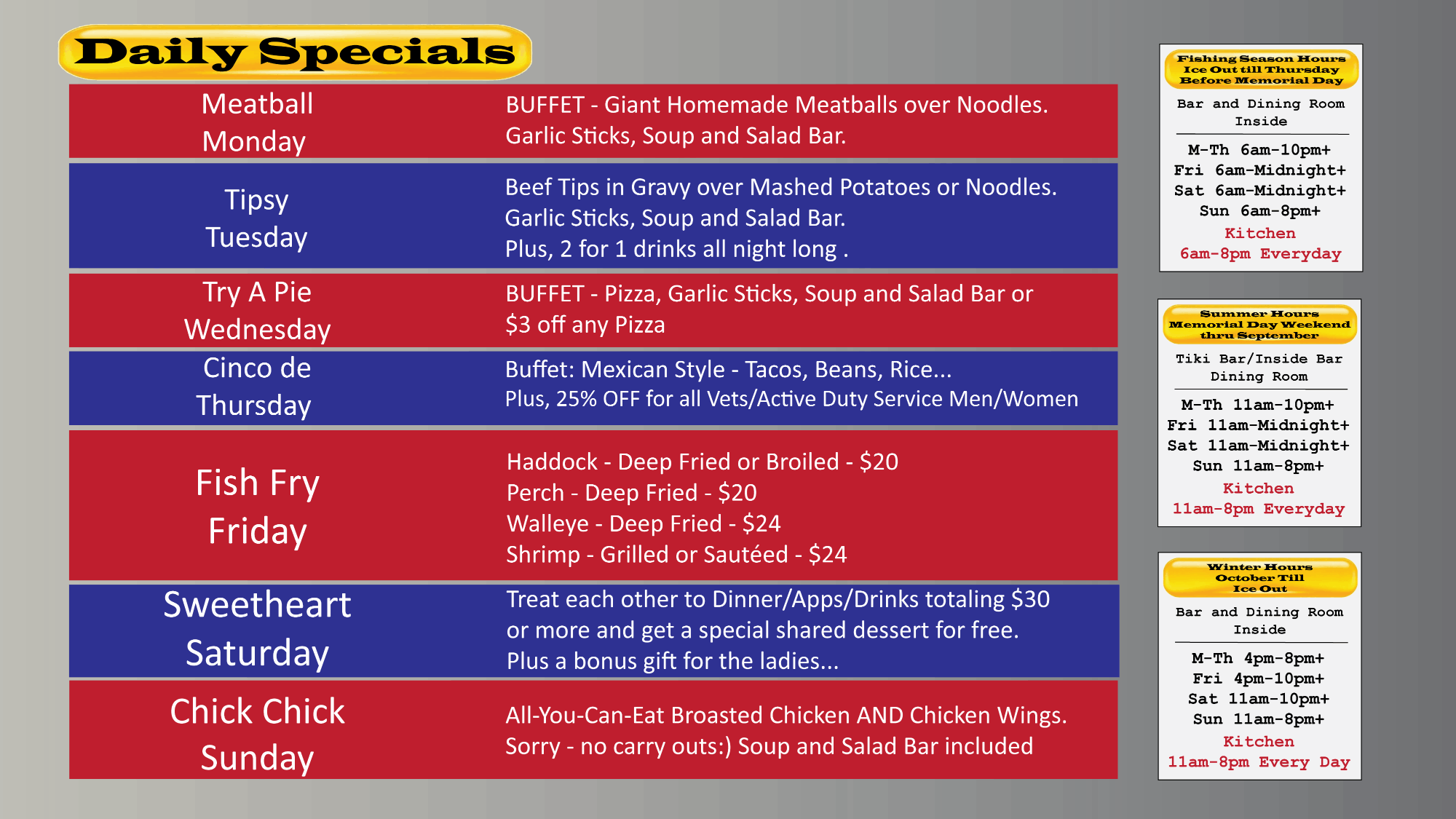 Food, Drinks & Daily Specials